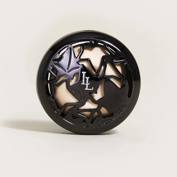 Aquí, las hojas de hiedra se encuentran en el objeto y forman un conjunto gráfico armonioso. En medio de una de ellas, verá las iniciales plateadas de la marca «LL». Su color negro brillante evoca la elegancia y la moda.