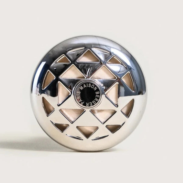 El aspecto frío y metálico del objeto se compensa con la presencia de motivos geométricos en relieve, transformándolo en una joya preciosa. Las formas triangulares que lo componen simbolizan esta delicada feminidad, vistiendo con elegancia su camarote. Sus intersticios a veces llenos, a veces vacíos, permiten que el perfume se difunda fácilmente en el aire.