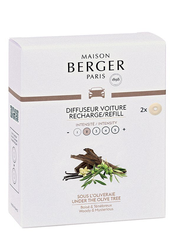 Este envase contiene 2 recambios de cerámica, que están impregnados de la fragancia Under the Olive Tree (Sous l'Oliveraie), un perfume amaderado y misterioso, seductor que te permite sumergirte en un embriagador y sensual mundo de emociones.