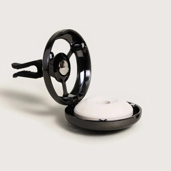 Con el difusor de coche Holly Poussière d'Ambre, también podrá disfrutar de agradables momentos sensoriales durante sus viajes. Dejese llevar por las notas especiadas de la canela, los ricos acordes del ámbar y el reconfortante dulzor de los bálsamos. El Difusor, que se engancha fácilmente a la rejilla de ventilación de su vehículo, ofrece sólo una intensidad 2 sobre 5 para una experiencia olfativa agradable y equilibrada. Además de crear una atmósfera cálida y envolvente en el habitáculo, este difusor de coche Holly Poussière d’Ambre le aporta un toque de estilo. El clip metálico recubierto de un hermoso negro iridiscente lo realza con elegancia. Su diseño destaca sobre todo gracias a las aberturas gráficas onduladas en forma de ondas. Una vez insertada la recarga de cerámica, la fragancia se difunde de forma sutil y regular. ¡Cada viaje le ofrece una nueva escapada, lo que hace que todos sus momentos de conducción sean aún más emocionantes!