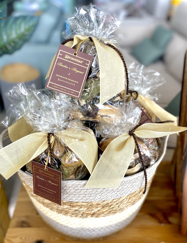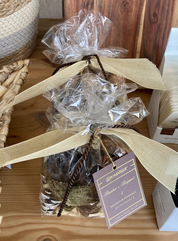 En nuestra incesante búsqueda de ofreceros siempre lo mejor, disponemos en exclusiva de los productos de la casa AROMATIQUE de la cual su Bolsa de Popurri, es el estilo icónico de Fragancia Decorativa.