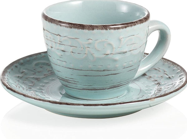 Fabricadas en Italia, este juego de taza y plato lo puedes encontrar en color blanco o turquesa.