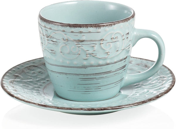 Fabricadas en Italia, este juego de taza y plato lo puedes encontrar en color blanco o turquesa.