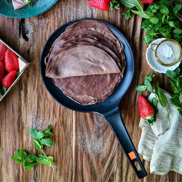 Con la Crepera Efficient vas a preparar unas perfectas crepes o unas deliciosas tortitas sin apenas utilizar grasas, gracias a su gran revestimiento antiadherente. Además, es una superficie ideal para su uso como plancha. Podrás cocinar de forma muy práctica y sin casi aceite desde unas verduras a una pechuga de pollo o una rica hamburguesa, marcada al punto sin que se te pegue nada. O si prefieres cocinar unos huevos, tan ricos como si estuvieran fritos, pero muy saludables al apenas llevar aceite, esta crepera es una opción fantástica para cocinar sin remordimientos.