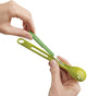 - El tenedor se engancha en el mango de la cuchara para un almacenamiento compacto.