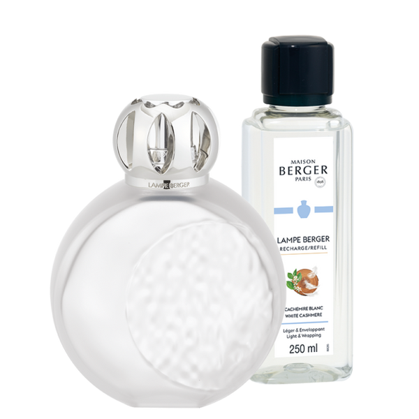 Creadora del diseño este cofre de Lámpara Berger Astral Givré, Rozenn Mainguené reúne mitos astrales poéticos y naturalidad futurista. Participe en este viaje lunar donde las texturas de los materiales son legión. En el lado liso del cristal emerge una luna creciente, mientras que en su otro lado, el trabajo realizado con este martillado irregular nos recuerda a los cráteres que salpican su superficie. Su color polar, de intensa luminosidad, realza cada curva del objeto y aporta modernidad a su interior. El cofre de Lámpara Berger Astral Givré, con su fría belleza, se acompaña de la fragancia pur Cachemire Blanc que le otorga todo su aura y revela su lado oculto. Los suaves aromas amaderados de la cachemira se mezclan con notas de azahar y acordes de almizcles blancos, para un acabado empolvado y delicado. Se establece entonces una atmósfera tenue, rica en nuevos descubrimientos olfativos.