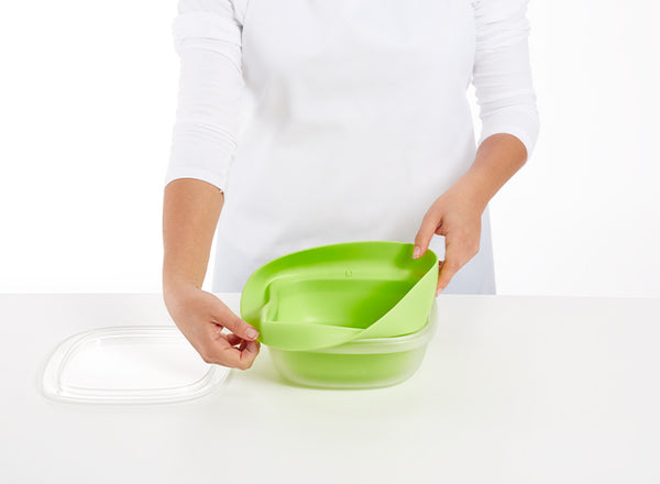 Ya no tienes que utilizar varios recipientes; con un solo producto puedes llevar a cabo 3 acciones con la que antes necesitabas distintos productos. Ahora ya no es necesario utilizar distintos boles ni utensilios para limpiar, colar y almacenar. Este colador 3 en 1 se convierte en una solución de almacenamiento para conservar verduras en nevera y mantenerlas frescas hasta su uso. Este colador para lavar alimentos también te permite mantener en remojo distintos ingredientes para después escurrir de una manera fácil, rápida y eficaz.