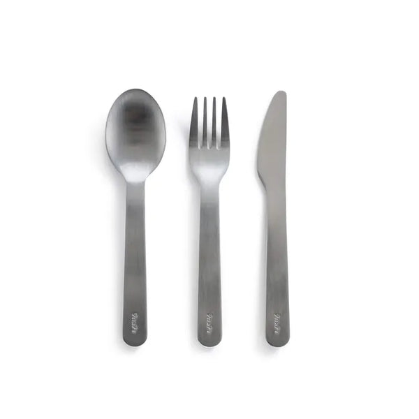 Juego de cubiertos para llevar, de acero inoxidable, que incluye cuchillo, tenedor y cuchara.