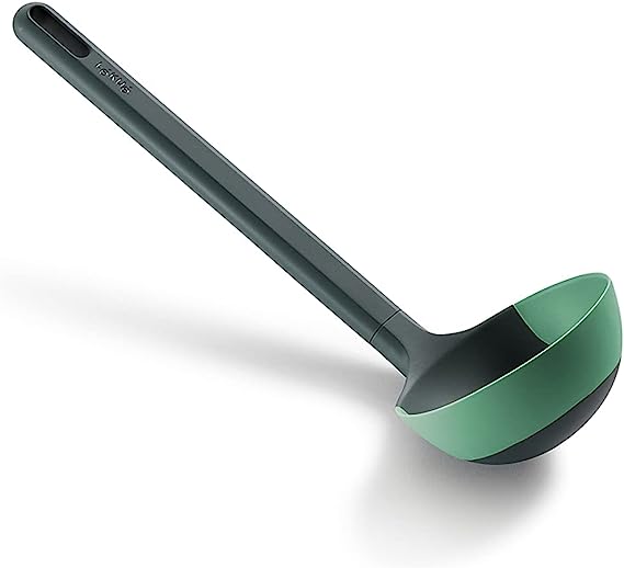 Cucharon para cocinar sin rayar las ollas y sartenes, gracias a la punta flexible de silicona 100 % platino, resistente a altas temperaturas desde la punta hasta el mango.
