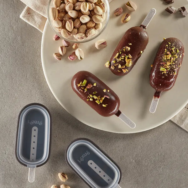 Set de 4 moldes para helado con tapa, fabricada en PP, que ayuda a aislar los helados de otros olores del congelador favoreciendo la higiene del proceso y evitando derrames. Al ser moldes individuales, permite que los helados sean apilables para ahorrar espacio y a la vez puedas ir cogiendo uno a uno cuando quieras consumirlos sin necesidad de retirar todos los moldes del congelador.
