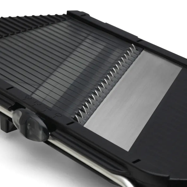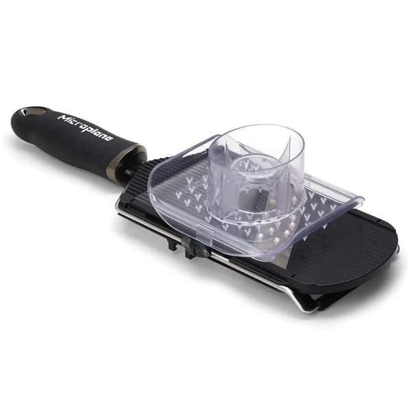 Con la Mandolina ajustable de Microplane y sus hojas de larga duración, ultra afiladas y corte en juliana producirás tiras largas y cortas.