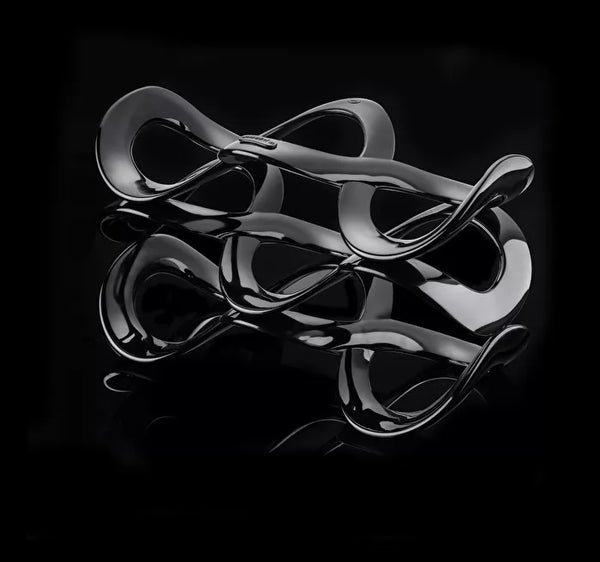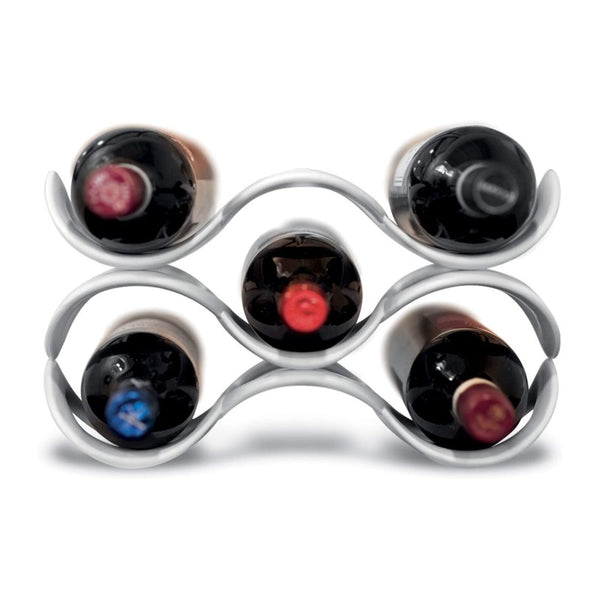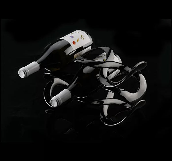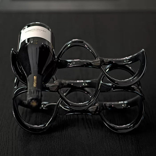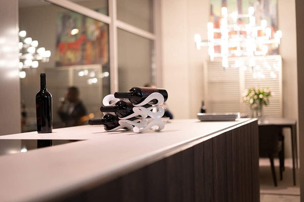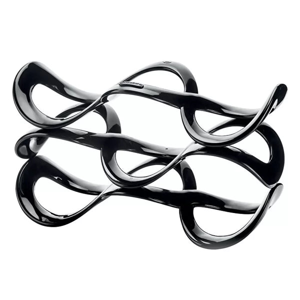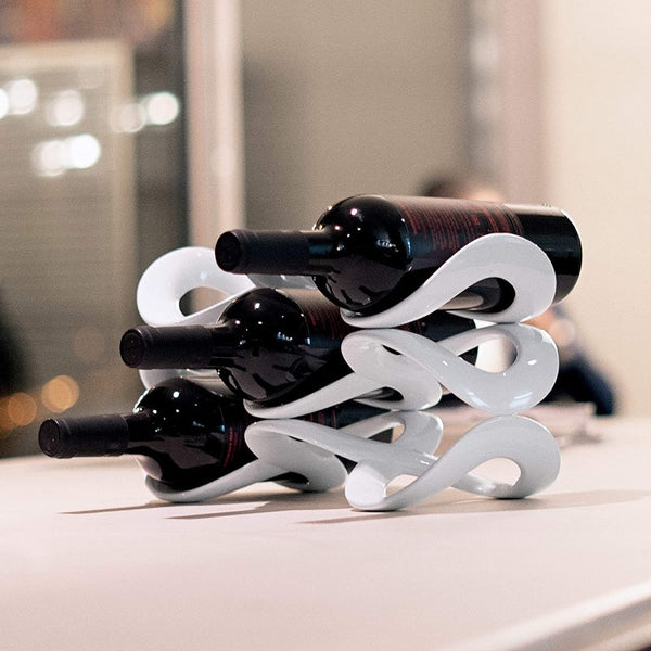 El botellero universal con un diseño elegante y refinado, también un adorno atractivo gracias a su forma original: una tira de material acrílico, entrelazada sinuosamente para crear una bodega capaz de recibir botellas de varios tamaños.