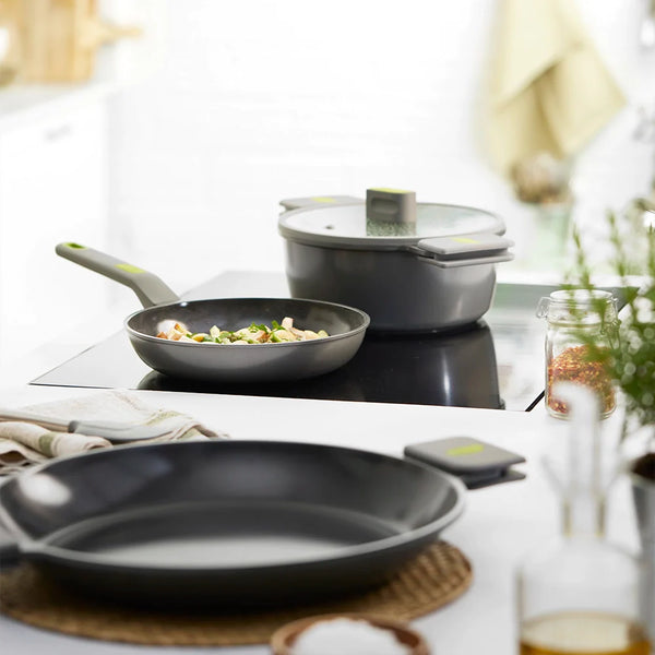 La cacerola alta de la colección Life está fabricada con aluminio fundido 100% reciclado certificado, de máxima calidad y fortaleza, generando un menor impacto medioambiental y contribuyendo a la economía circular. Son cacerolas con un menor peso, pero igualmente robustas a pesar de su ligereza, lo que las hace ideales para el día a día, especialmente para las personas con dificultades para levantar utensilios más pesados.