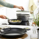 Apta para todas las fuentes de calor incluida la inducción, y para su uso en el horno hasta 220 °C (sin las asas de silicona).