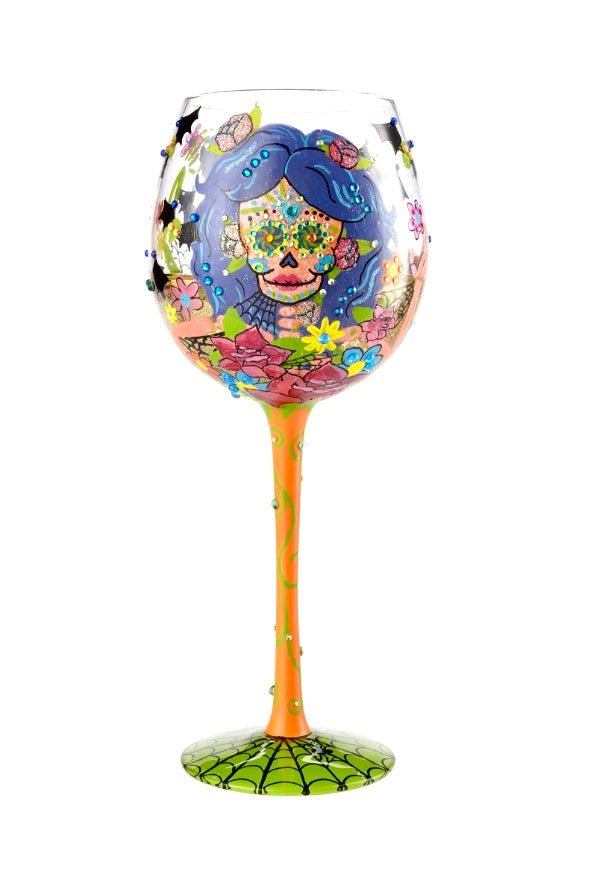 La tradición mejicana se basa en el recuerdo de los seres queridos que han fallecido pero que siguen vivos vivos en nuestros corazones, mientras los recordemos con cariño. Brinda por ellos con esta sensacional copa de vino Lolita.
