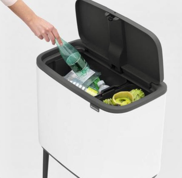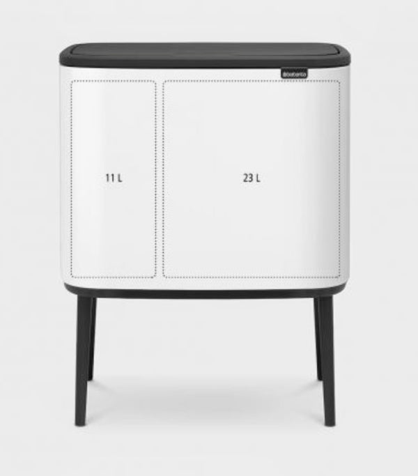 El cubo para reciclaje viene dos con dos compartimentos de 11 y 23 litros.