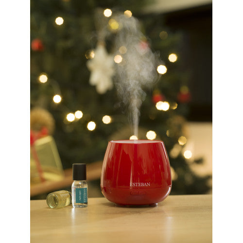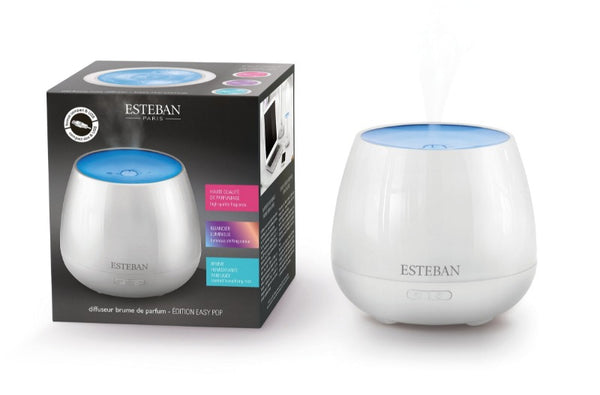 Diseñado específicamente para trabajar con esencias de perfumes de Esteban, el difusor también se puede utilizar con ciertos aceites esenciales para una función de aromaterapia. Funciona con un sistema de ultrasonidos para la vaporización en frío.