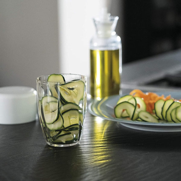 - Es seguro y fácil de usar gracias al elemento prensador salva dedos, puede cortar verduras largas o redondas, es ergonómico ya que dispone de un agarre y un agarre cómodo.