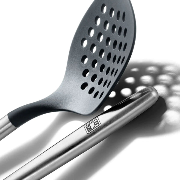 La espumadera Signature es una pieza de gran calidad y estética muy elegante. Es ideal para preparar y servir tus recetas escurriendo líquidos y aceite, sin dañar tus ollas, cazos, sartenes y cacerolas con o sin revestimiento antiadherente.