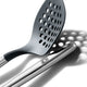 El mango es de cómodo agarre y está fabricado en acero inoxidable 18/10 de alta calidad con un grosor de 0,8. La pala perforada es de silicona y nailon, de gran calidad y apta para el contacto alimentario. Un utensilio muy práctico, de gran belleza y excelente diseño.
