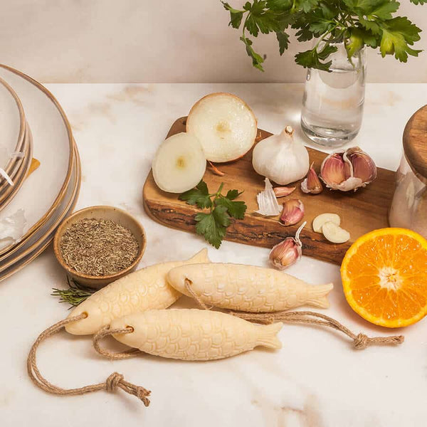 El Jabón Sardina Castelbel está elaborado con romero pulverizado y creado para eliminar los malos olores -como el olor a ajo o a pescado- de las manos. Equipado con un práctico cordel para colgarlo del grifo y con un jugoso perfume de Naranja y Romero, el Jabón de Sardinas Castelbel es también un regalo original muy apreciado por los turistas.