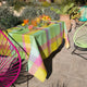 La profusión de sus flores en relieve recuerda el aroma de las vacaciones y el cuadro en madrás evoca los tocados de las mujeres criollas.
