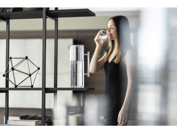 Elegante jarra transparente creada para conmemorar el aniversario 110 de Guzzini (1912-2022).