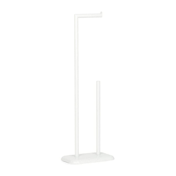 - Portarrollos de pie con capacidad de almacenaje de metal blanco. También disponible en color negro.