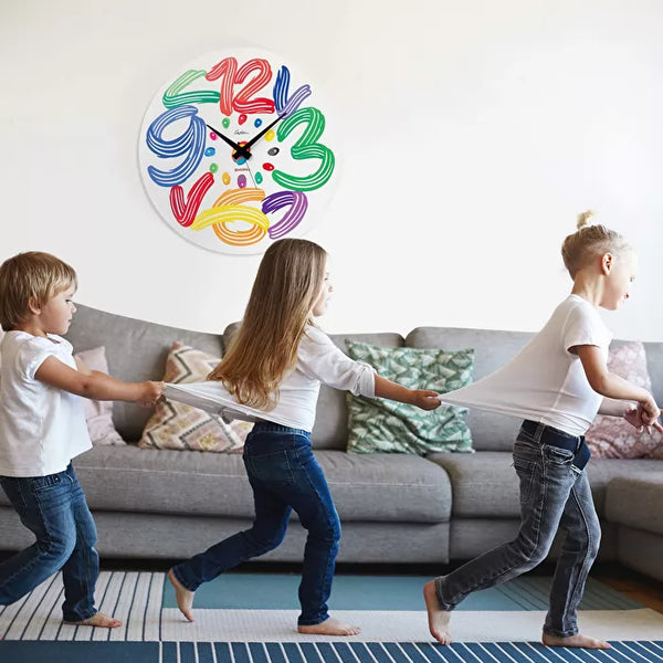 El reloj de pared Art Time devuelve toda la vitalidad, ligereza y alegría de los signos gráficos y el color.