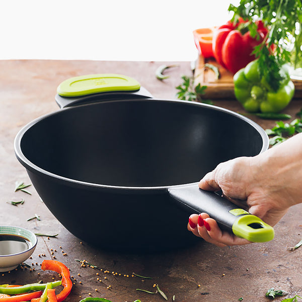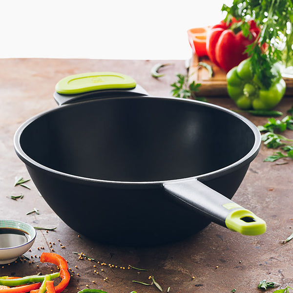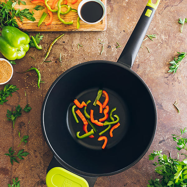 El wok Foodie es una wok ideal para el día a día en la cocina, siendo una fantástica opción por su relación calidad/precio, unidos a un diseño moderno. Es una cacerola robusta fabricada en aluminio fundido con un revestimiento antiadherente tricapa libre de PFOA.