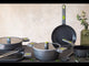 Cuenta con antiadherente cerámico de larga duración y gran eficacia que ofrece un rendimiento mejorado. El recubrimiento de alto brillo es muy resistente al calor, permite cocinar casi sin aceite, se limpia muy fácilmente y tiene una extraordinaria resistencia a la abrasión.