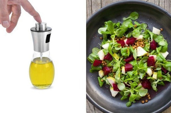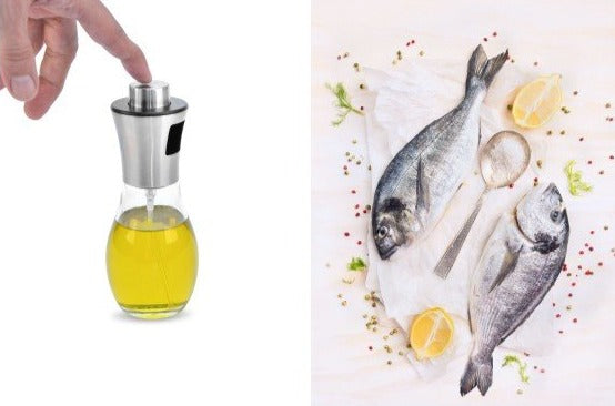 Aceitera de vidrio con spray de 200 ml para uso en la cocina. Perfecta para un uso eficiente del aceite.