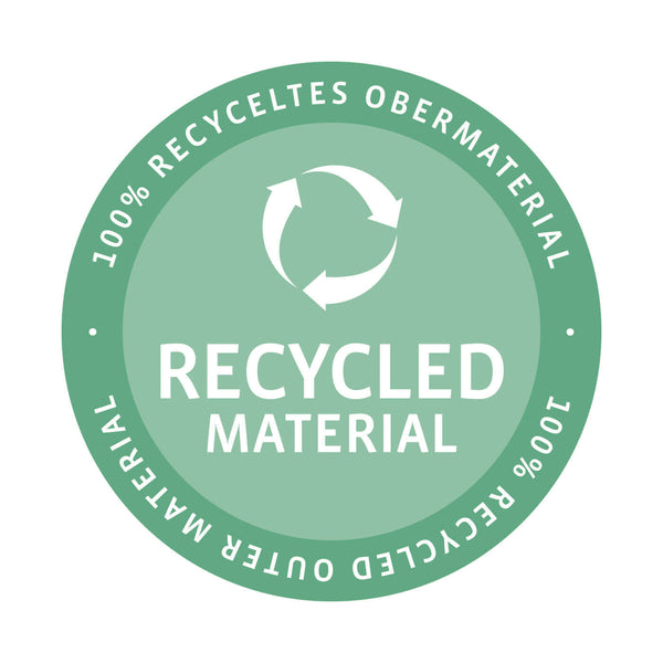 - Material principal: 100% poliéster reciclado de primera calidad, repelente al agua