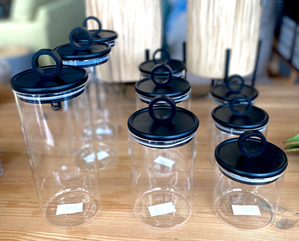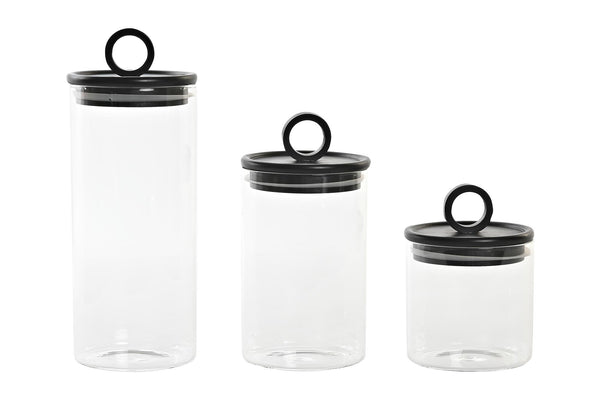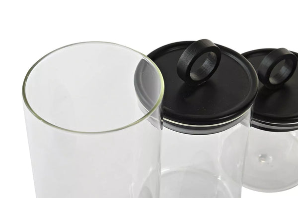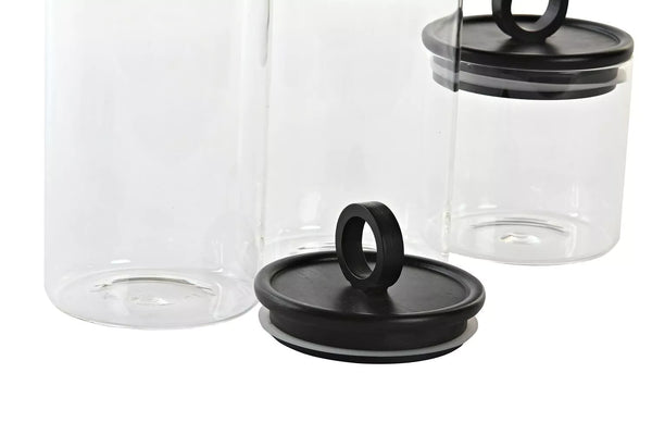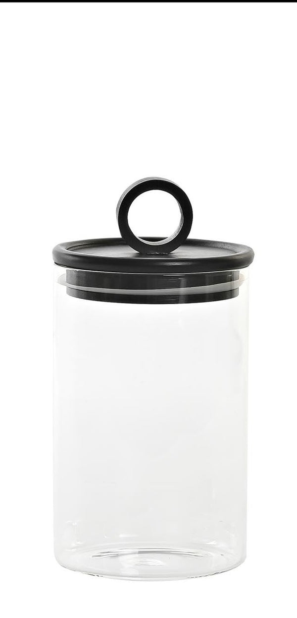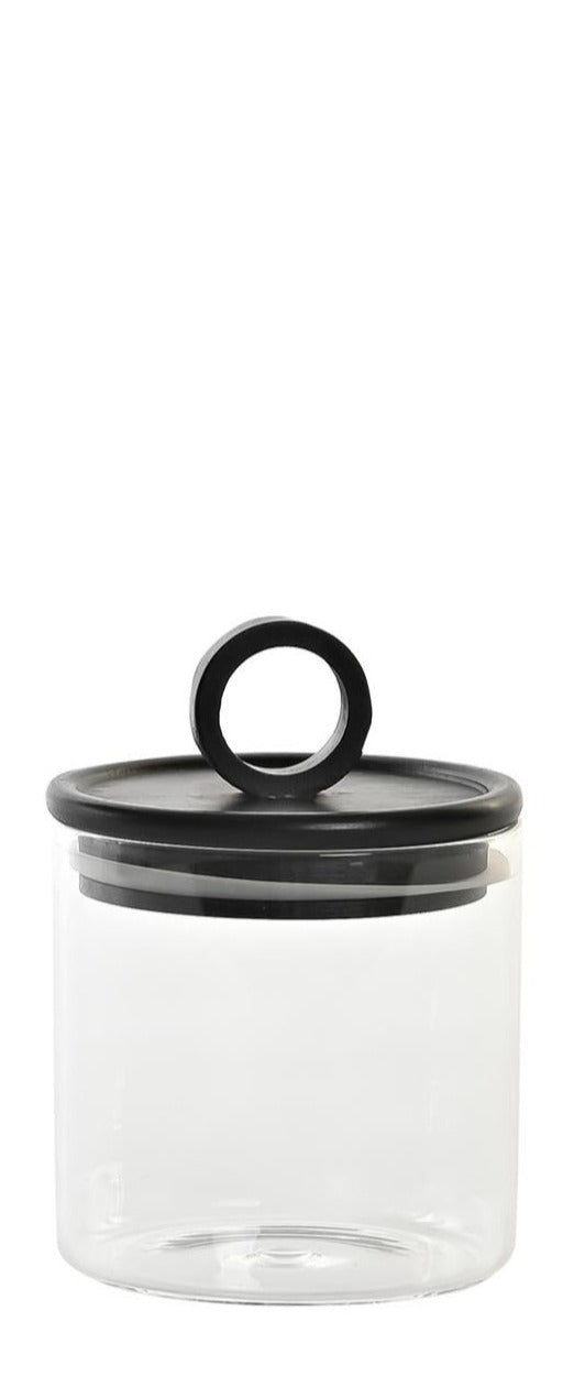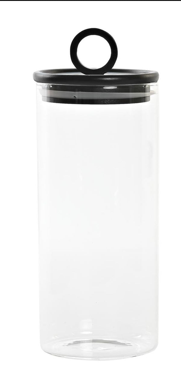 Bote hermético de cristal con tapa negra de bambú.