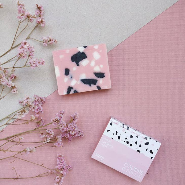 Nuestros jabones están hechos a mano en una pequeña fábrica en el corazón de Berlín. Solo se utilizan aceites y grasas vegetales seleccionados y aceites esenciales para la producción. Estos tienen naturalmente propiedades limpiadoras, nutritivas y regeneradoras. Los jabones son veganos y no contienen aceite de palma ni ingredientes a base de aceite mineral. El jabón está disponible en cuatro tipos: piedra verde: fragancia de limón fresco con aceites esenciales de limoncillo, lavanda, palmarosa, citronela y sándalo Bluestone: fragancia de hierbas picantes mediterráneas con aceites esenciales de lavanda, madera de cedro, pachulí y carbón de tomillo: fragancia floral fresca con aceites esenciales de pelargonium, palmarosa, clavo de olor y piedra rosa patuli: fragancia floral fresca con aceites esenciales de lavanda, geranio y salvia Un trozo de jabón pesa 70 g