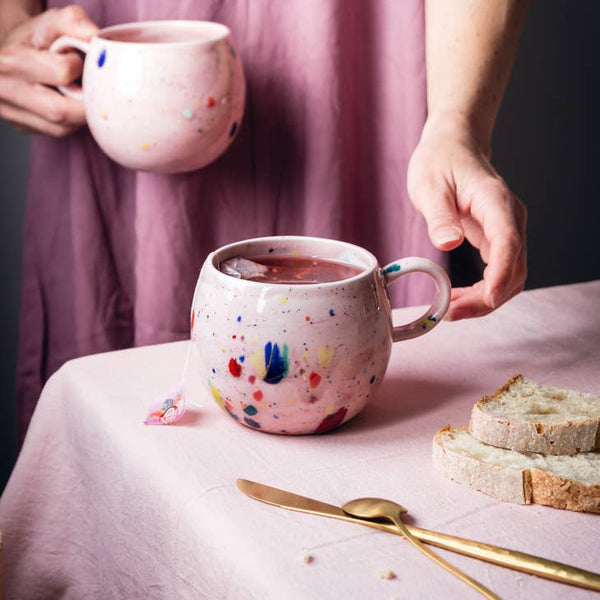 Regálate un momento tranquilo y relajado con nuestra hermosa taza «Party Pink Ball Mug». Esta elegante pieza de cerámica, con un acabado de esmalte brillante y una paleta de colores, es perfecta para cada ocasión. Pieza de cerámica hecha a mano en loza. Todos nuestros productos son aptos para alimentos y aprobados por la propuesta 65 de EE. UU. Todos son aptos para lavavajillas y microondas. Nuestros artículos tienen imperfecciones naturales y únicas. Cualquier artículo que compres es único.