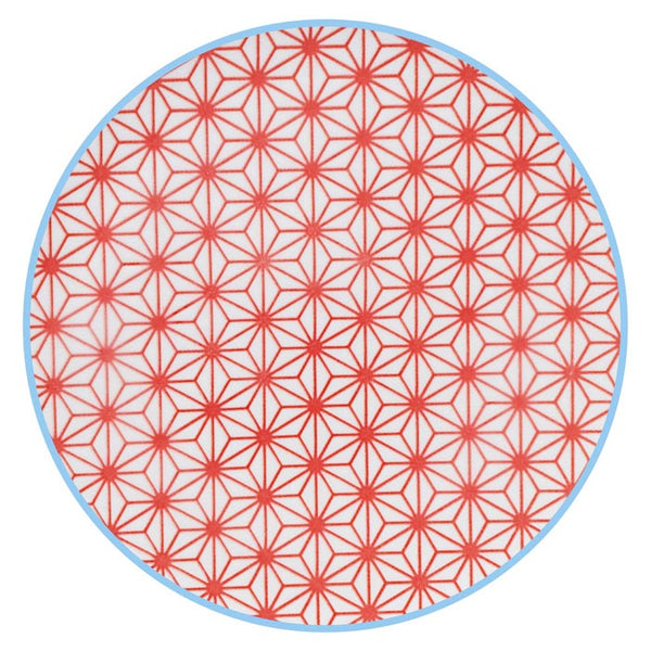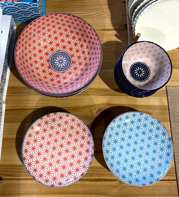 Plato de porcelana japonesa con una tonalidad alegre y revitalizante, combinada con motivos geométricos de estilo oriental.