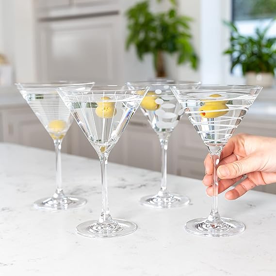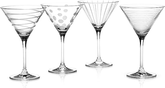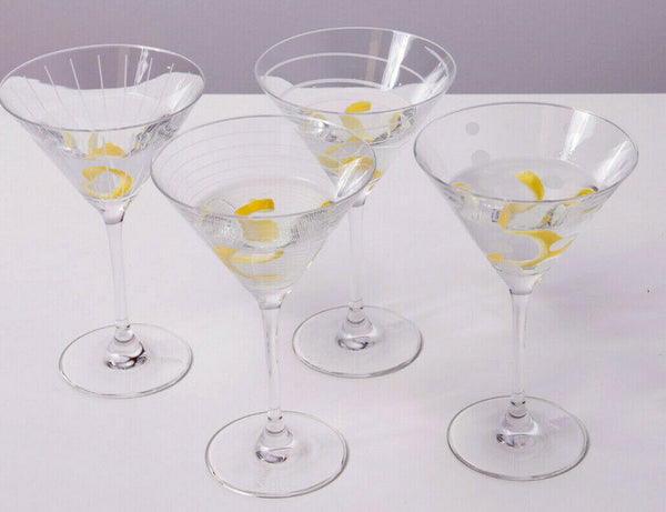 Original y atractivo juego de 4 copas con diseños únicos grabados en el cristal, perfectas para degustar tu vino favorito con estilo.
