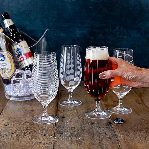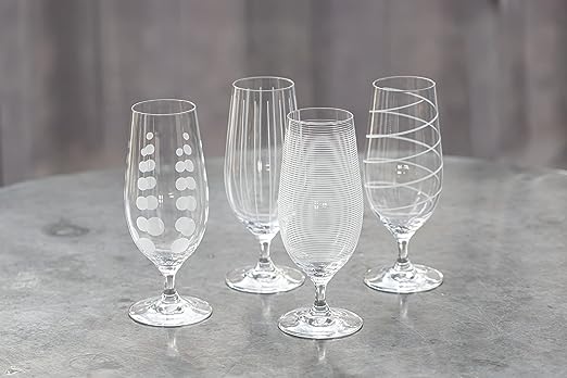 Original y atractivo juego de 4 copas con diseños únicos grabados en el cristal, perfectas para degustar tu cerveza favorita con estilo.