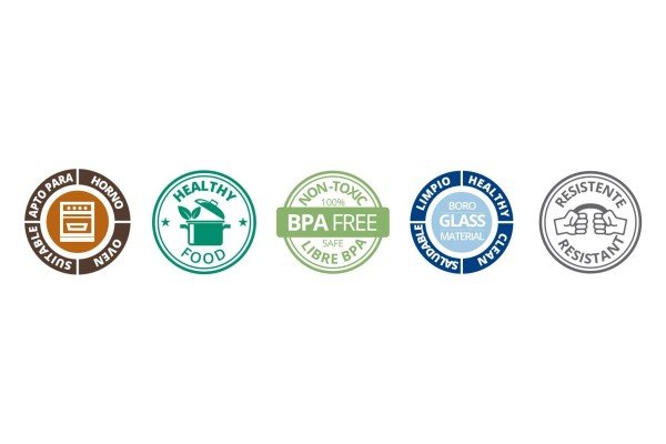 El vidrio de la base es borosilicato y es apto para microondas, lavavajillas y horno. También se puede colocar en la nevera y en el congelador. La tapa, de vidrio templado, es apta para lavavajillas, nevera y congelador.