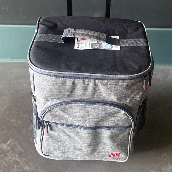 El tejido exterior es water-proof. Gracias a sus paredes extra gruesas consigue conservar el frío hasta 12 horas con el uso de enfriadores.