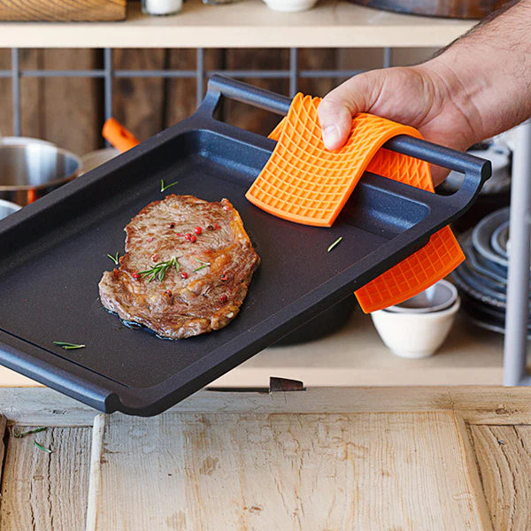 Las dos unidades de los multiusos Bra Safe son muy funcionales, ya que te ofrecen tres usos diferentes. Son ideales para proteger tus sartenes, puesto que su tamaño y su grosor evitan el roce e impiden que se rayen. Son perfectos como manopla o agarrador, para retirar las cazuelas, bandejas o los moldes del horno sin quemarte, ya que resisten temperaturas de hasta 250° C. Y como salvamanteles resultan fantásticos, ya que puedes colocar sobre ellos las cacerolas o sartenes más calientes, al tiempo que protegen la superficie de la mesa o la encimera sin moverse, gracias a sus imanes integrados. Son muy funcionales y, al estar fabricados en silicona de alta calidad, se limpian muy fácilmente.