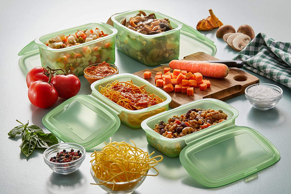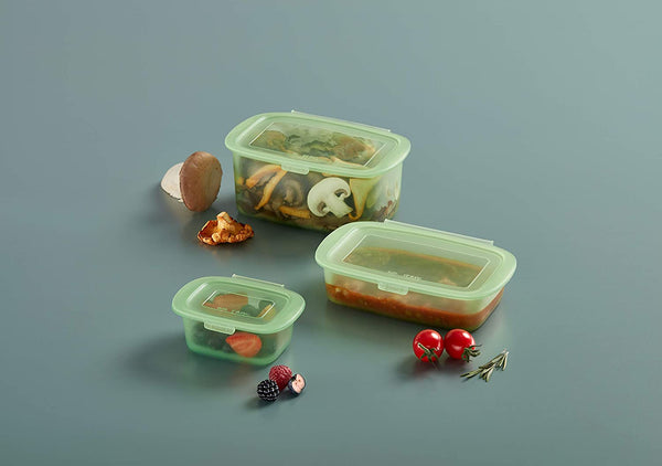 - Diseñados para ahorrar espacio de almacenaje. Son apilables los unos con los otros y, cuando están llenos, también son modulables para ahorrar espacio en la nevera o congelador.