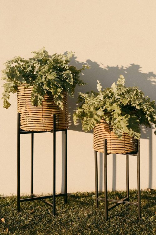 Con su bonita estructura en ratán y acero, es un producto lleno de encanto y modernidad. Sus colores, natural y negro, resaltarán tus plantas verdes en su entorno para resaltar este pequeño toque de verdor en la habitación. Ideal en un rincón del salón, en la entrada o en una pequeña veranda bien cubierta, esta pequeña maceta aportará un toque realmente acogedor combinando calidez y suavidad. Te ayudará a crear un ambiente único en tú hogar.