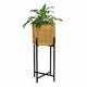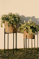 Macetero con estructura metálica fabricado en ratán sintético, que ayuda a mantener la humedad de nuestras plantas, y estructura de metal.