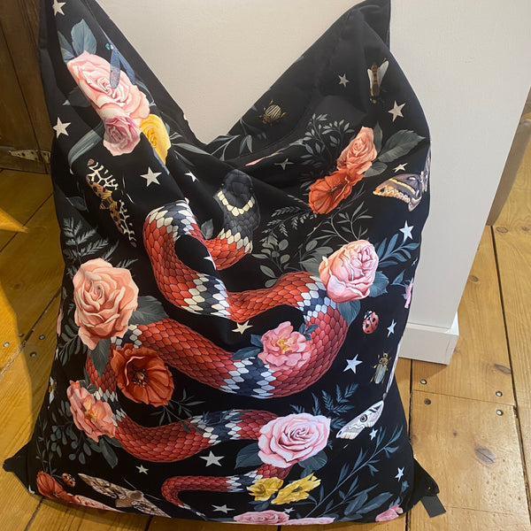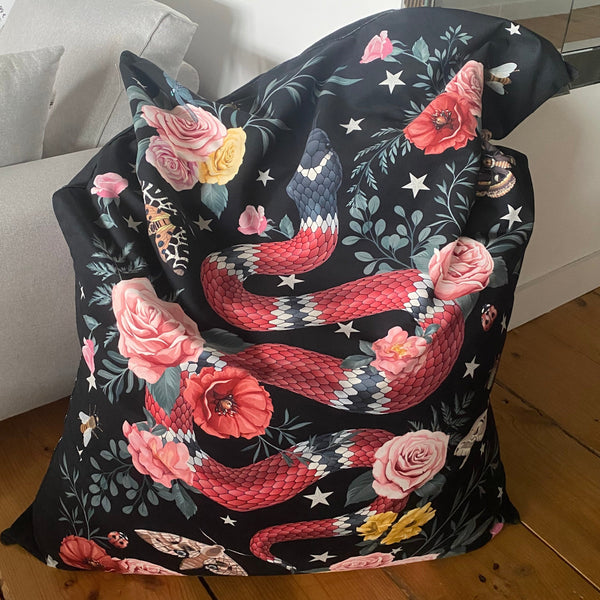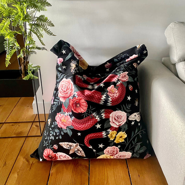 Pouf extragrande de terciopelo “Snake Noire”.