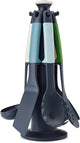 Este elegante juego de utensilios cuenta con 6 utilees de cocina con cabezales de nailon y soportes para herramientas integrados en los mangos.
