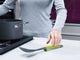 Los mangos pesados y los soportes para herramientas integrados evitan que los cabezales de las herramientas toquen la superficie de trabajo cuando se colocan hacia abajo.