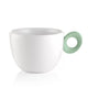 Tazas de desayuno luminosa que combina la elegancia de la porcelana con el brillo del plástico de color verde.